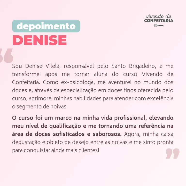 Pelo menos 60% dos matriculados no Vivendo de Confeitaria já estavam produzindo docinhos por conta própria e não entendiam porque não davam o próximo passo.